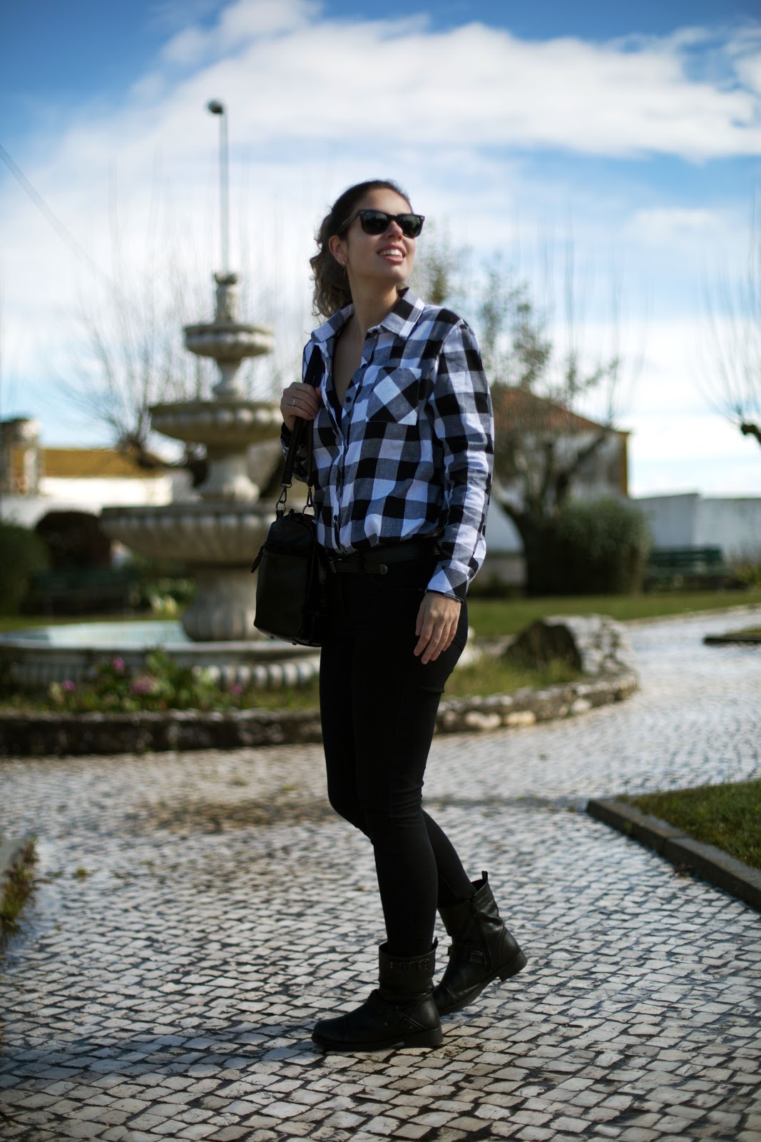 Este fim de semana andei por outras terras e aproveitei para fotografar este look. Estava um frio e vento horríveis mas, estava também este sol brilhante, por isso este look resultou tão bem com este dia. Hoje trouxe-vos um look mais para o dia-a-dia, preto e branco, que fica sempre bem.